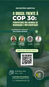 Speaker at the seminar entitled ” Brazil facing COP 30: perspectives on negotiation and implementation agenda”, held on the 28th of May 2025. Title of my contribution: Costanza Di Francesco Maesa: “What legal solutions for an ecological AI?”